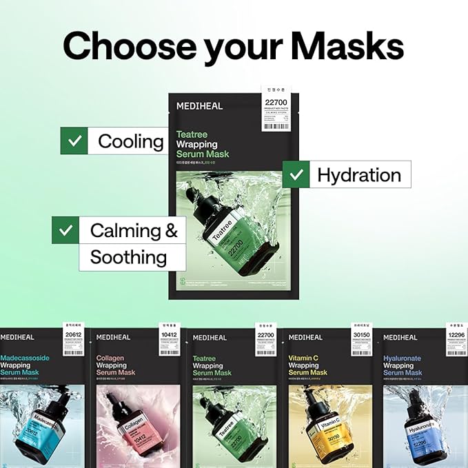 Meet the mask that gives stressed skin a deep breath of clarity. The MEDIHEAL Teatree Wrapping Serum Mask is infused with a concentrated blend of purifying tea tree, calming centella, and skin-balancing botanicals that work together to soothe irritation, control excess oil, and refresh congested or breakout-prone skin — without stripping or drying.